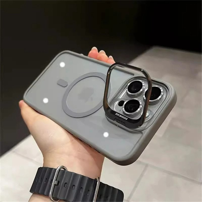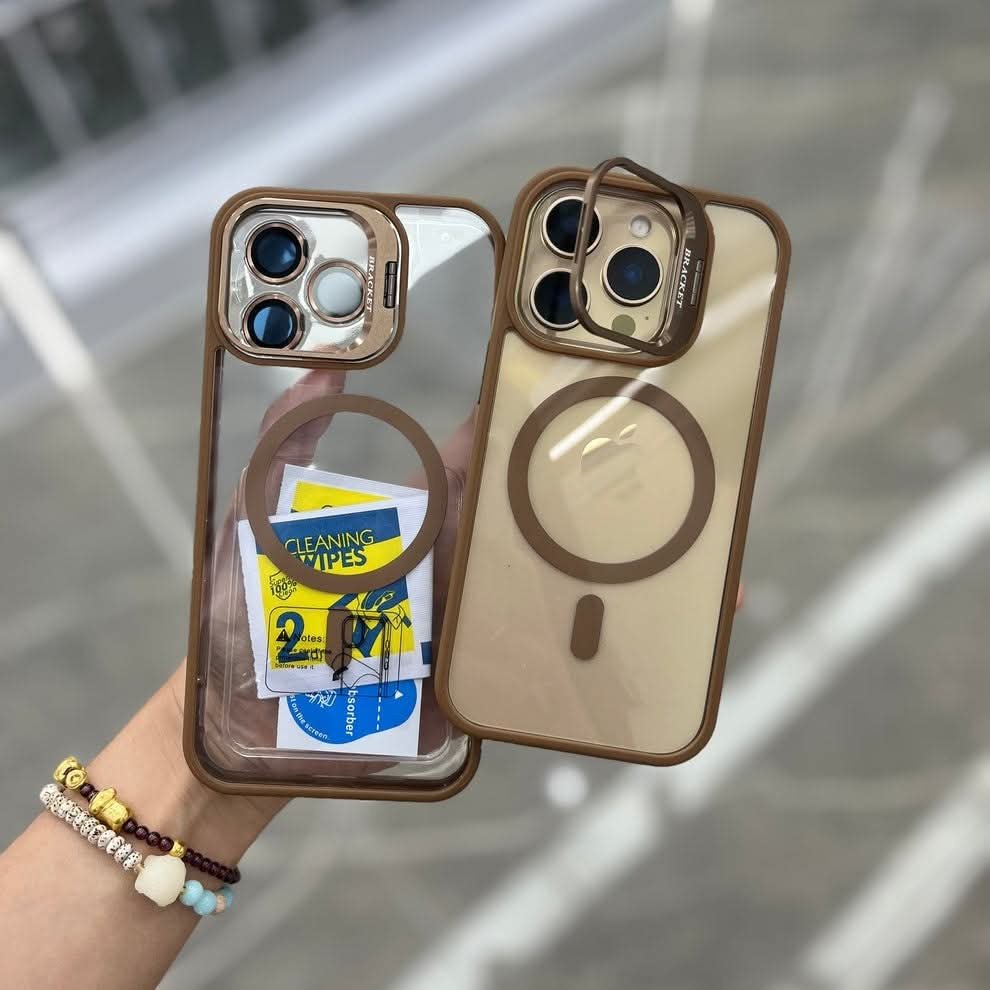 Camera Stand Rubber Frame Magsafe Transparent Iphone Case